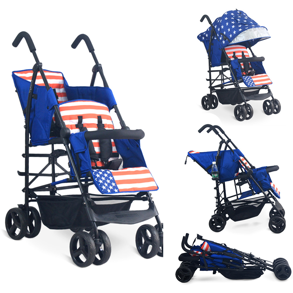 Dimensi terbuka : 110cm (tinggi) x 73cm (lebar samping) x 50cm (lebar depan) Dimensi lipat : 118cm x 33cm x 30cm Berat tanpa aksesoris : 9.8 kg (pada kursi belakang) untuk usia : 3 bulan sampai berat max 18 kg (pada kursi depan) untuk usia : 6 bulan